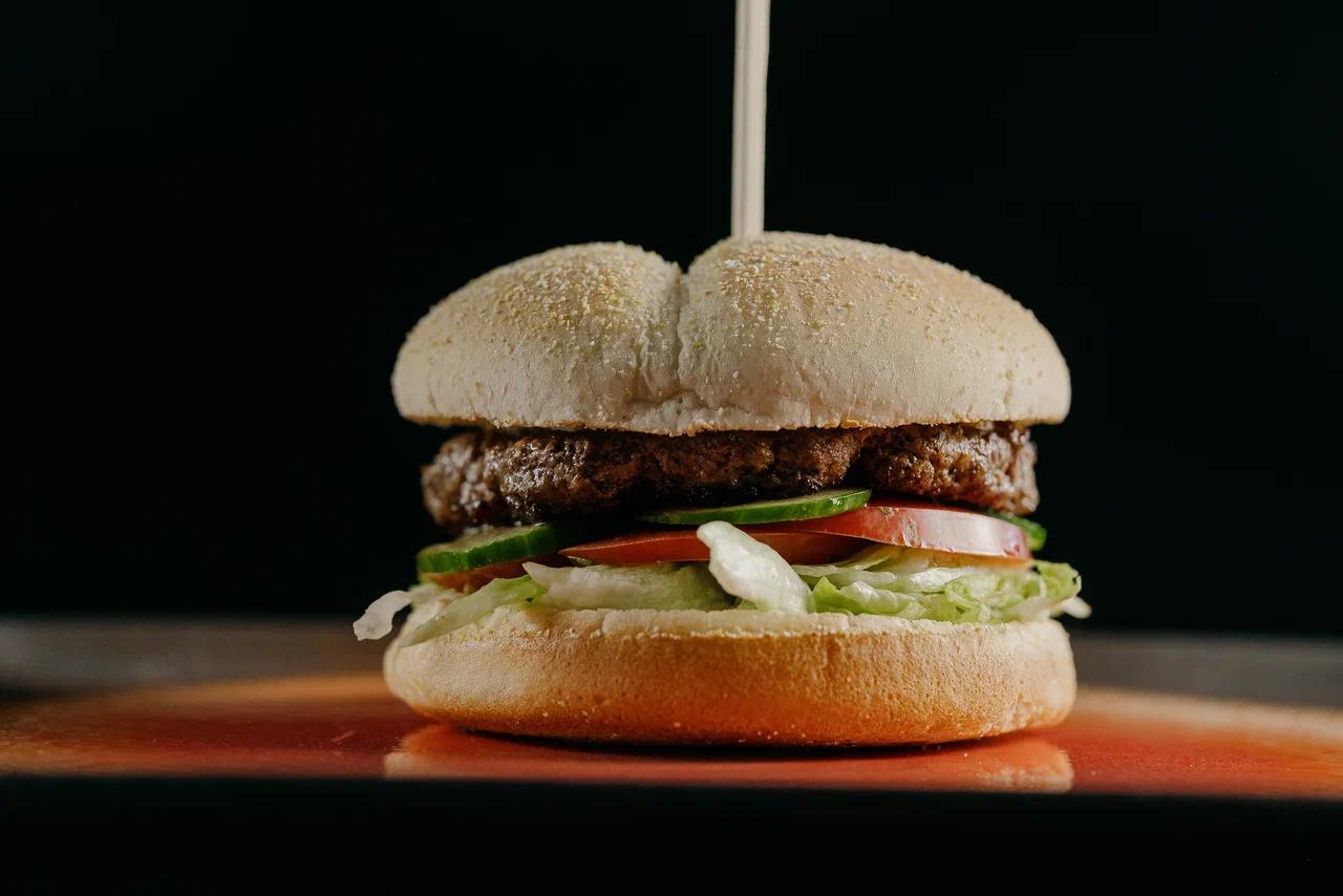 Классика с котлетой из мраморной говядины, салатом «Айсберг», свежими овощами и горчично-тар-тар соусом.