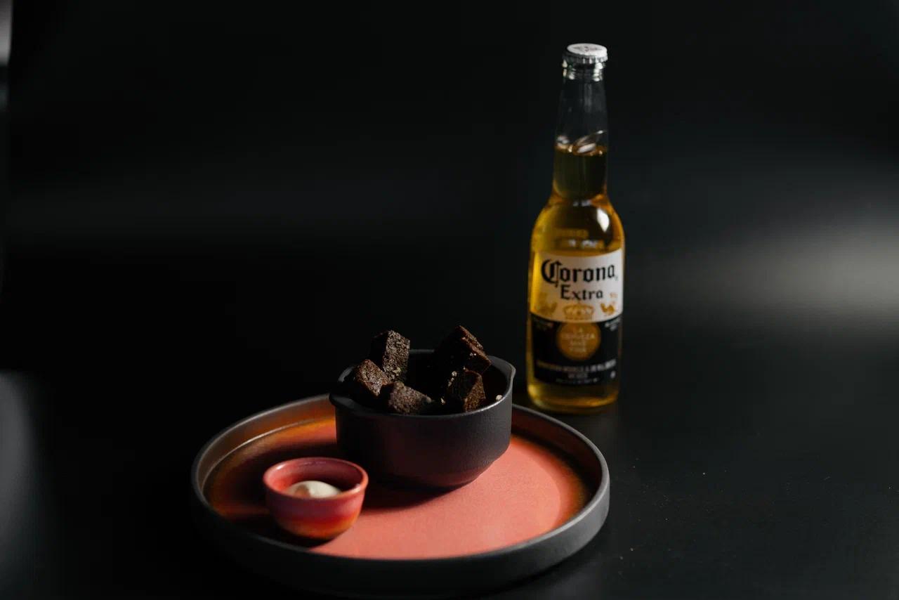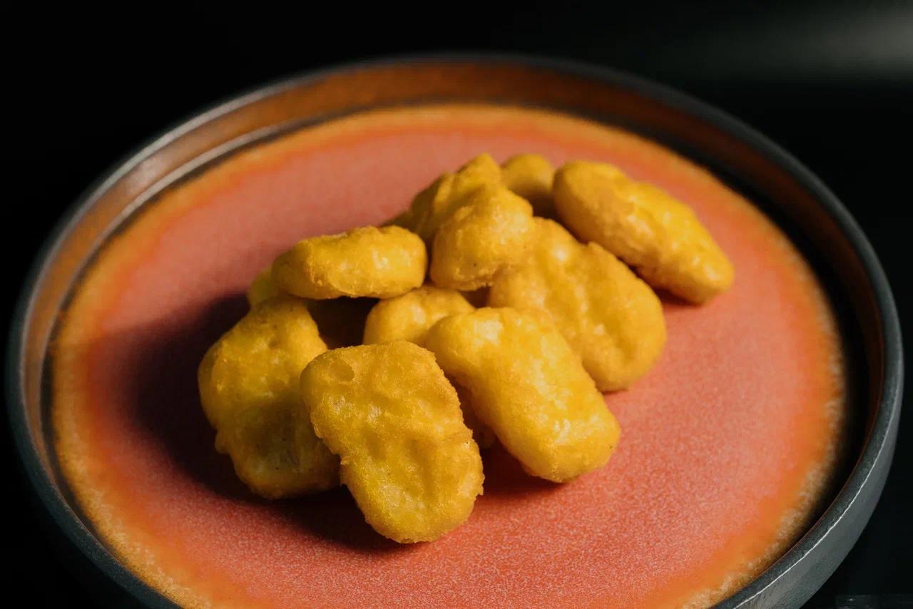 Хрустящие кольца кальмара в панировке, подаются с соусом.